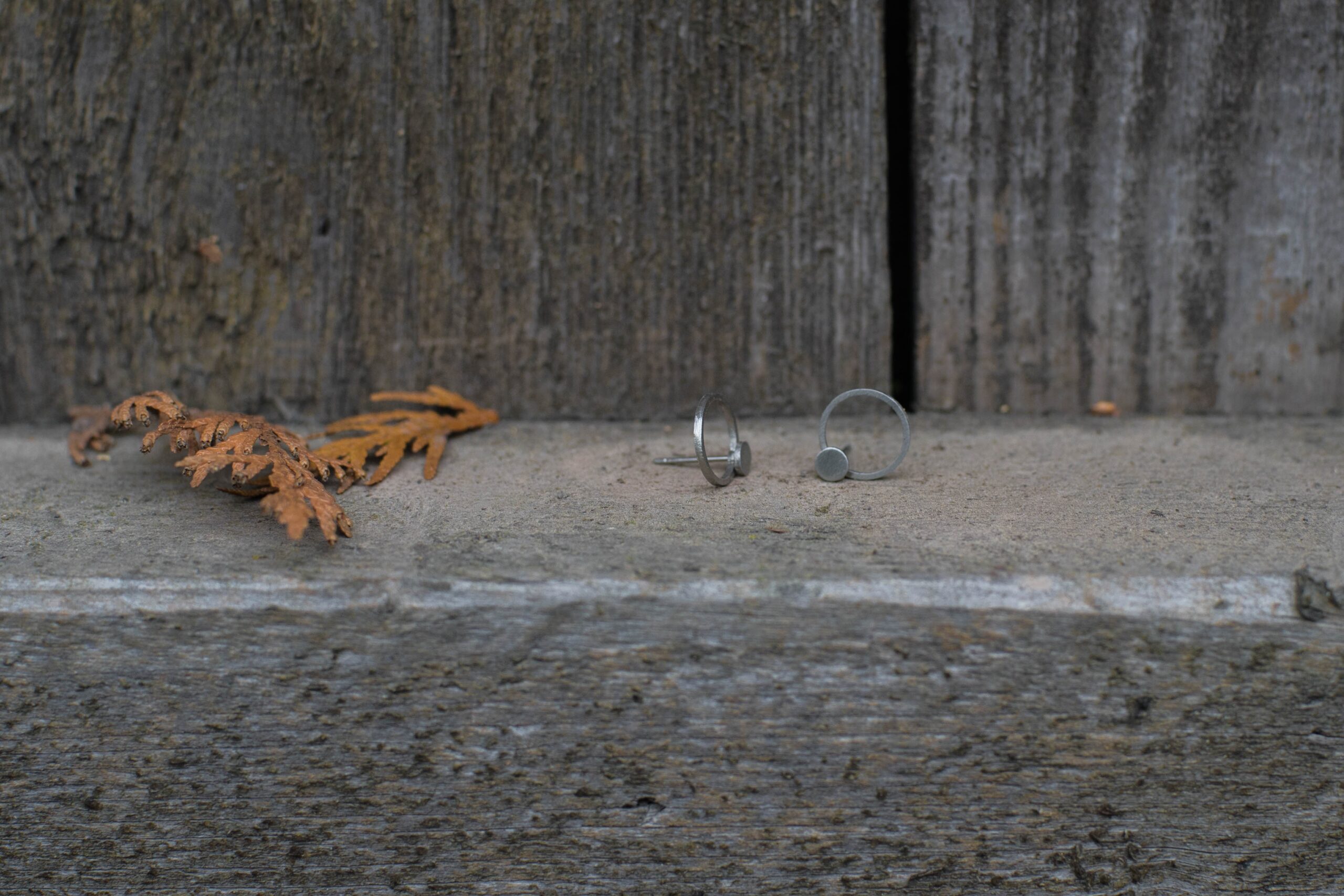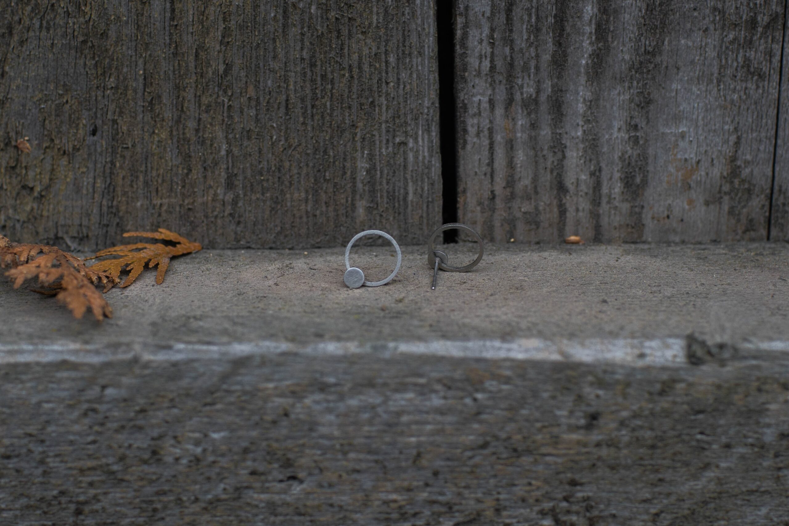 Náušnice jsou vyrobené z nerezové oceli, průměr je 11 mm. Nerezová ocel je materiál, který se vyznačuje hlavně svou pevností, stálostí a houževnatostí. Její hlavní výhoda však je, že se jedná o antialergenní materiál, takže se nemusíte bát alergických reakcí. Náušnice se dají nosit třemi způsoby. Obě části mohou být vepředu, menší puntík může být vepředu a kruh vzadu za uchem a nebo lze nosit jen malé kolečko samostatně. Doplněny nerezovými zarážkami.