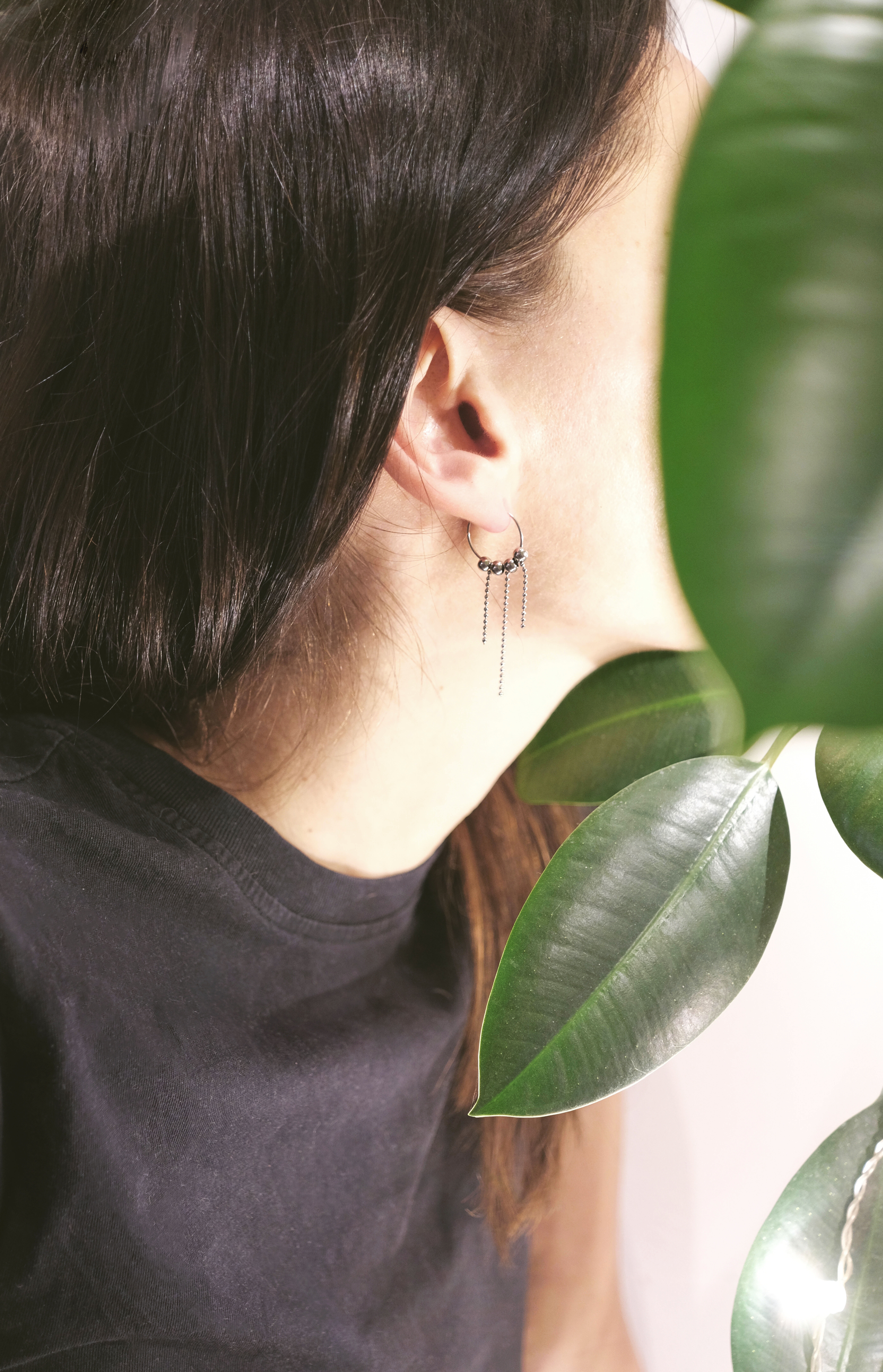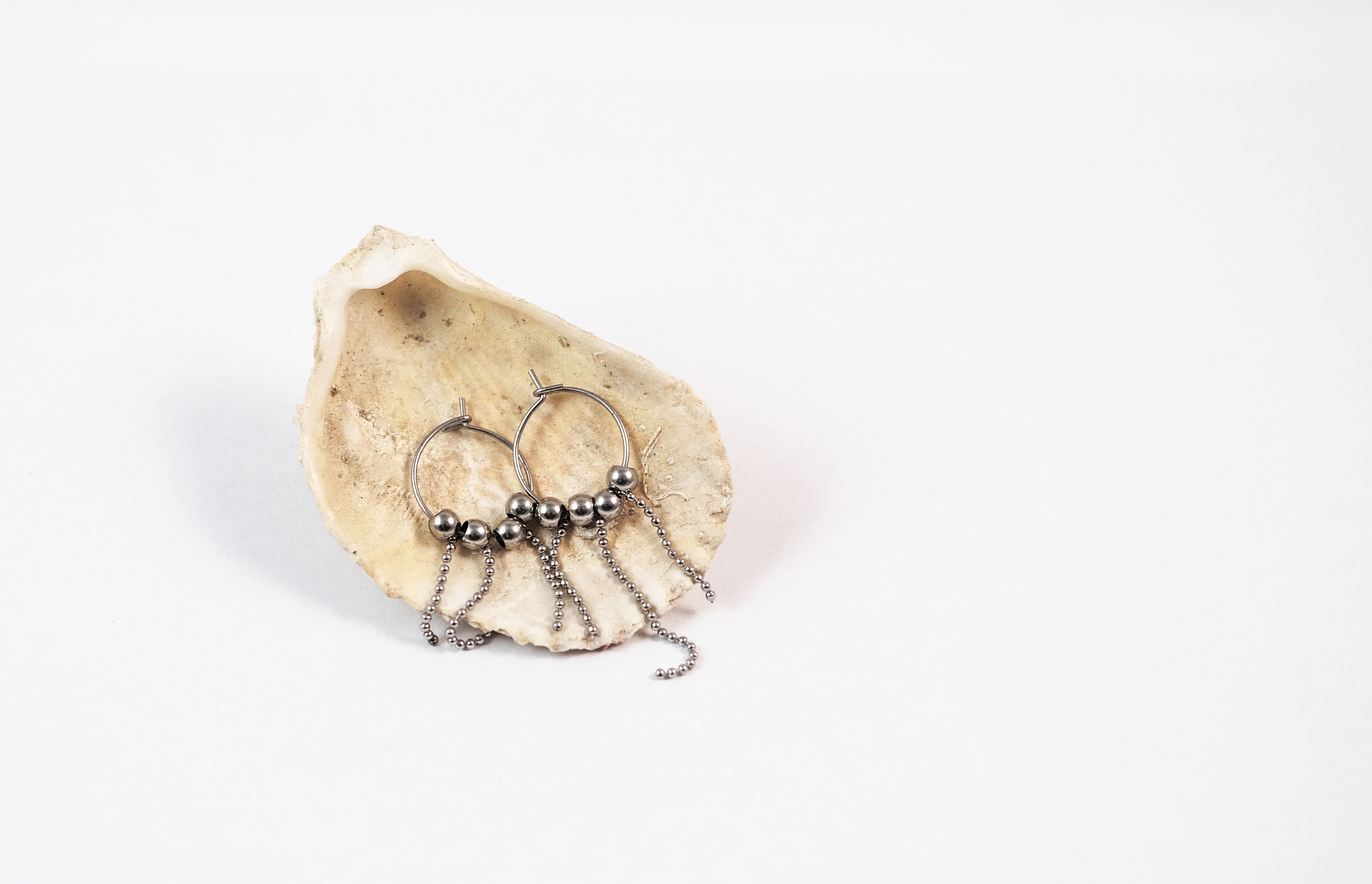 Náušnice jsou vyrobené z nerezové oceli, doplněné nerezovými korálky, průměr kroužku je 15 mm. Nerezová ocel je materiál, který se vyznačuje hlavně svou pevností, stálostí a houževnatostí. Její hlavní výhoda však je, že se jedná o antialergenní materiál, takže se nemusíte bát alergických reakcí.