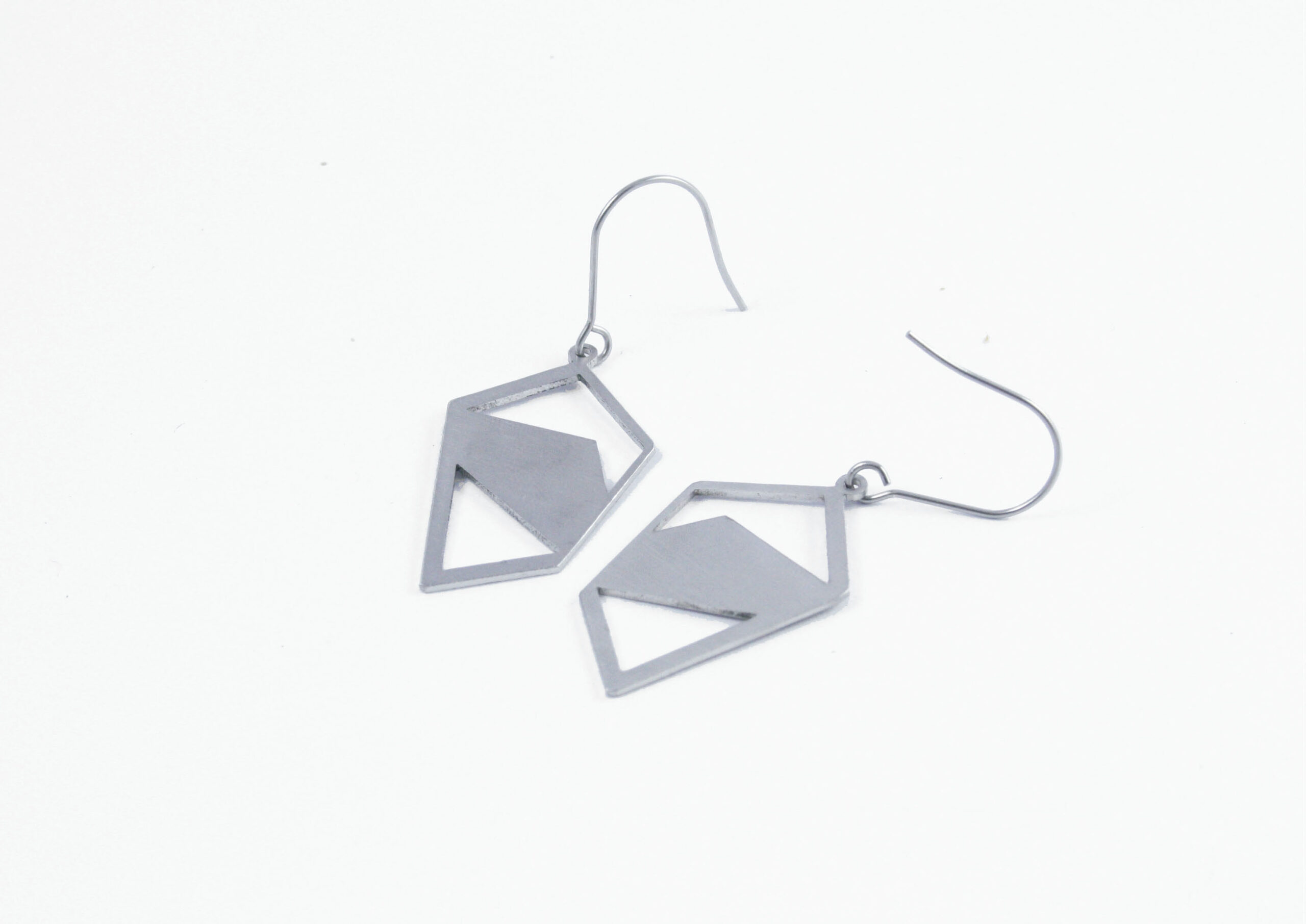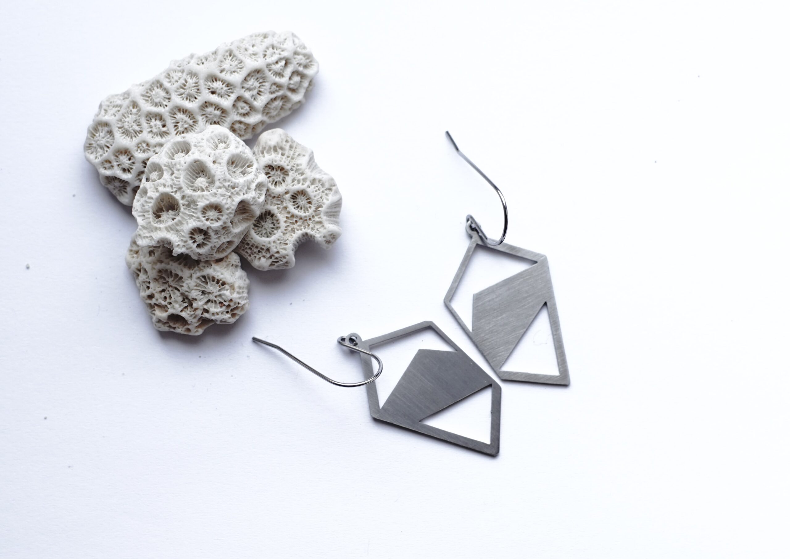 Náušnice jsou vyrobeny z broušeného nerezu 1 mm. Nerezová ocel je materiál, který se vyznačuje hlavně svou pevností, stálostí a houževnatostí. Její hlavní výhoda však je, že se jedná o antialergenní materiál, takže se nemusíte bát alergických reakcí. Doplněny háčky z chirurgické oceli a plastovými zarážkami.