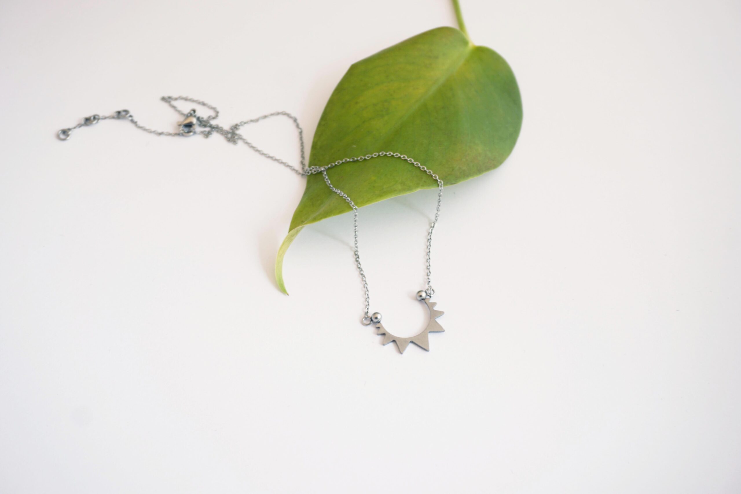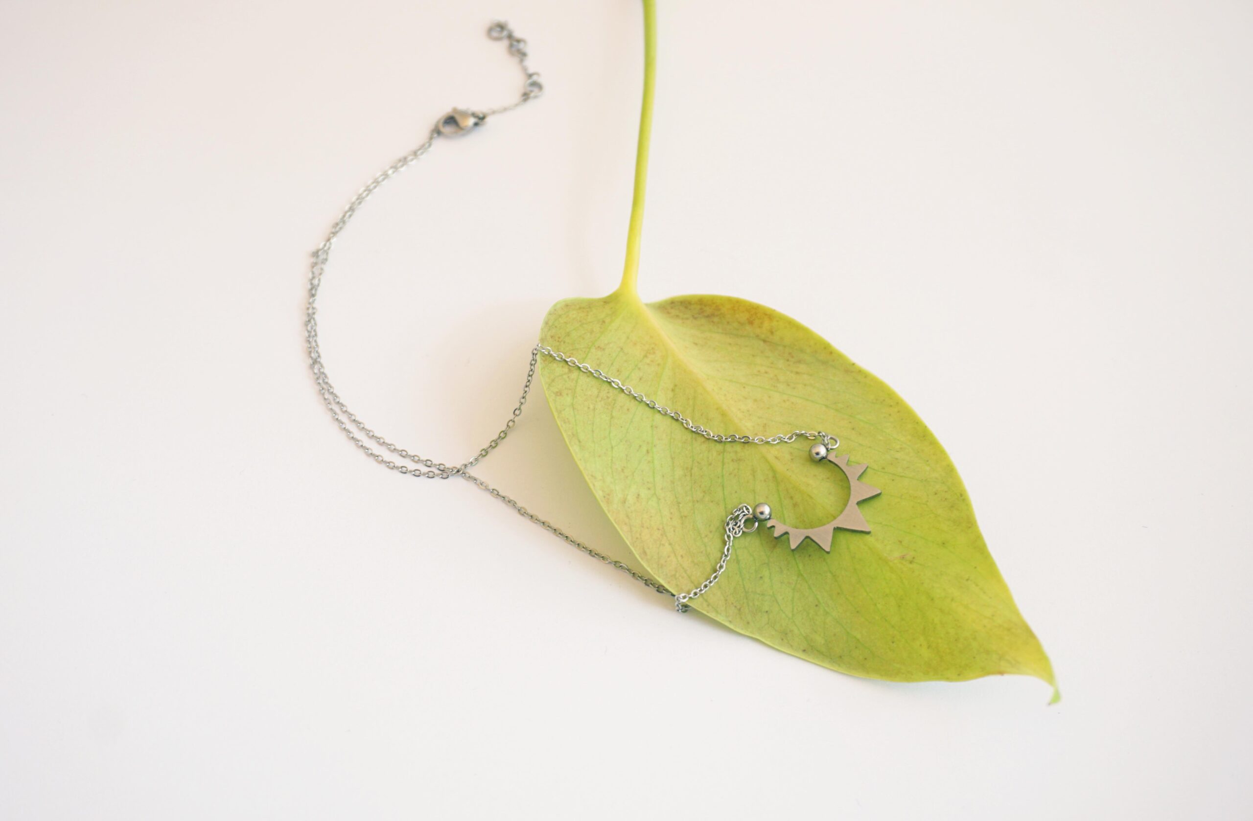 Řetízek Slunce je vyrobený z broušené nerezové oceli. Nerezová ocel je materiál, který se vyznačuje hlavně svou pevností, stálostí a houževnatostí. Její hlavní výhoda však je, že se jedná o antialergenní materiál, proto se nemusíte bát podráždění kůže nebo alergických reakcí. Délka řetízku je cca 40, 42, 44 cm (na konci je více ocelových kroužků) na konci je ukončen klasickým zapínáním. K řetízku si můžete pořídit také náušnice ve tvaru slunce.