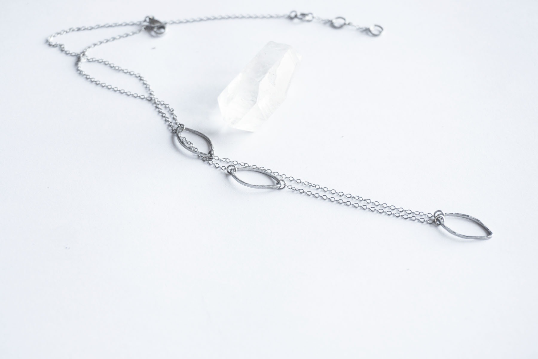 Nepravidelný řetízek s motivem drobných lístků.
