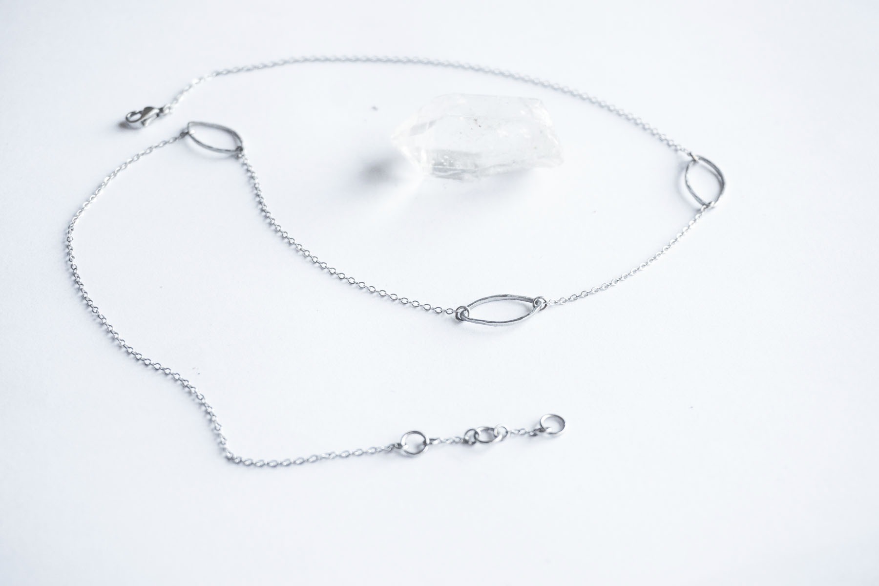Řetízek e vyroben z nerezové oceli s probrušovaným povrchem. Nerezová ocel je materiál, který se vyznačuje hlavně svou pevností, stálostí a houževnatostí. Její hlavní výhoda však je, že se jedná o antialergenní materiál, proto se nemusíte bát podráždění kůže nebo alergických reakcí. Velikost přívěšku s lístky je 25 x 17 mm. Celý řetízek je ukončený pomocí klasického zapínání.
