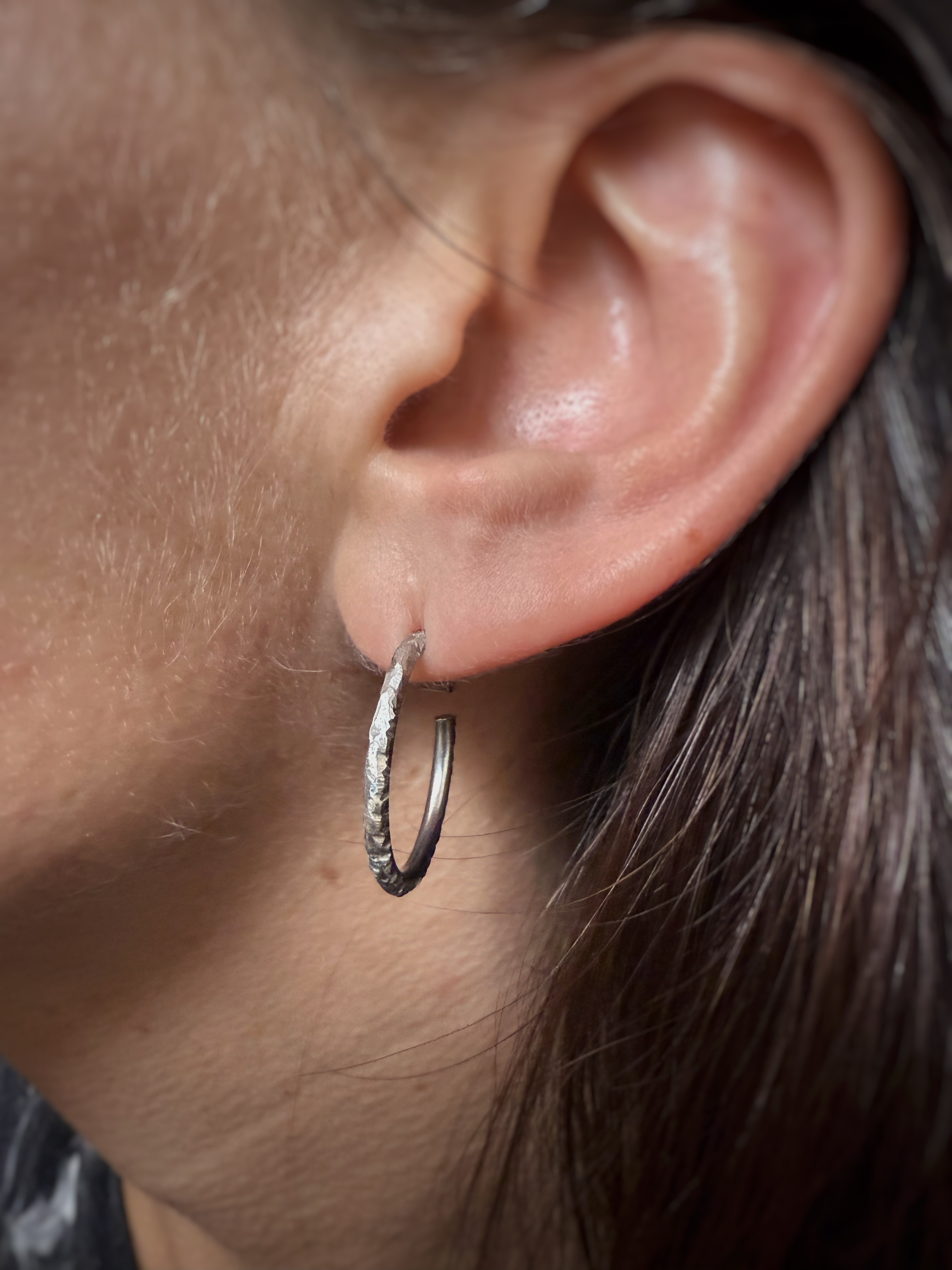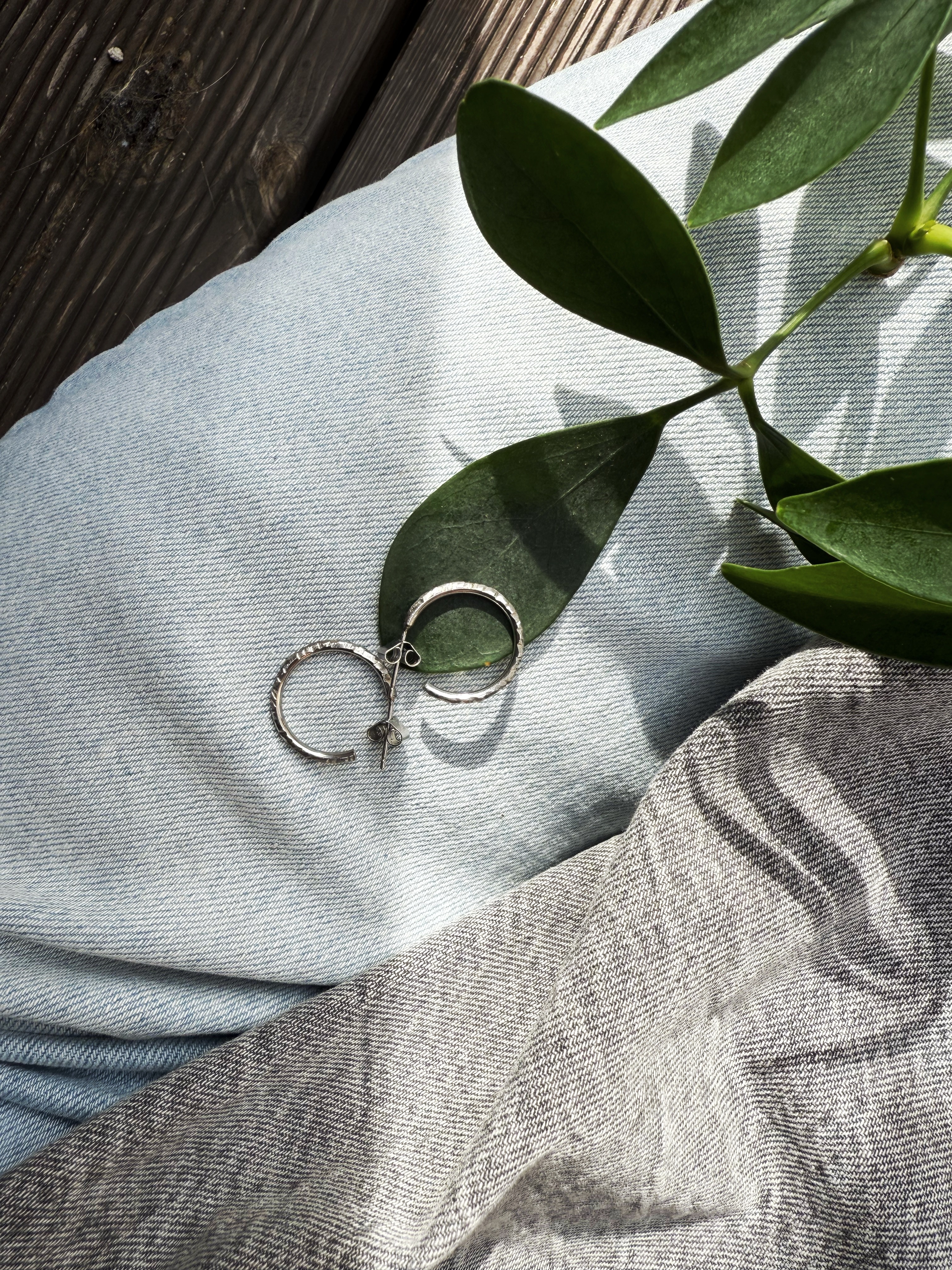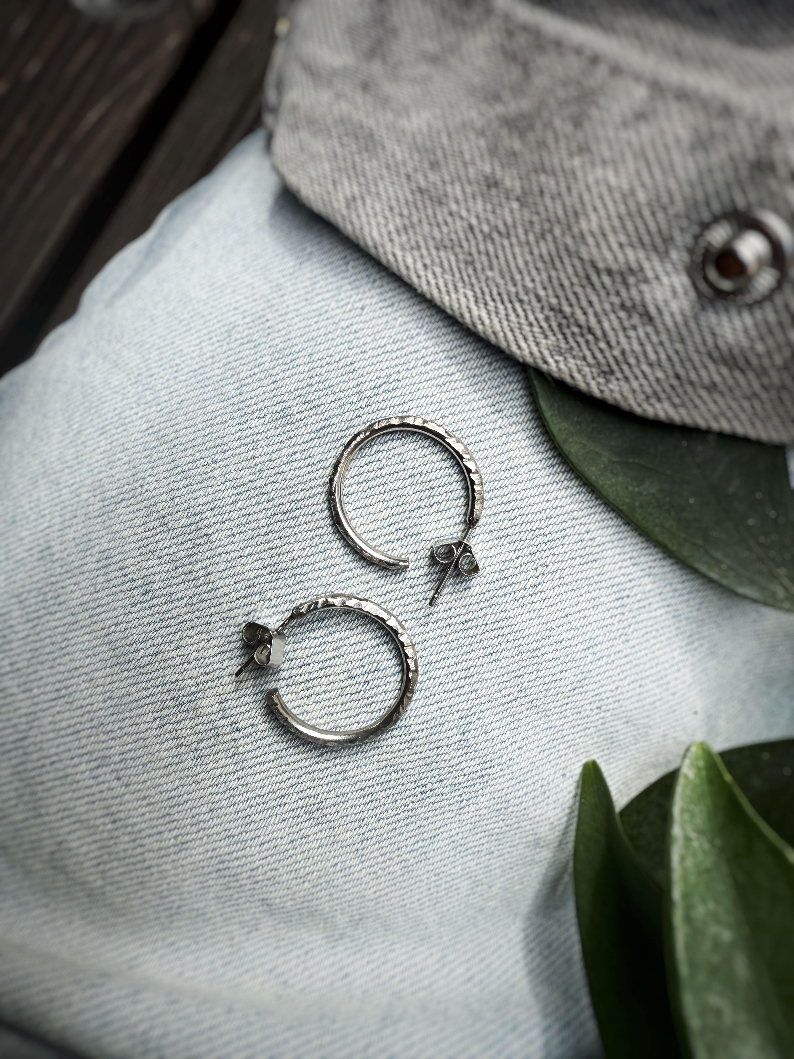 Náušnice jsou vyrobené z nerezové oceli, na povrchu probrušované. Jejich průměr je 20 mm. Nerezová ocel je materiál, který se vyznačuje hlavně svou pevností, stálostí a houževnatostí. Její hlavní výhoda však je, že se jedná o antialergenní materiál, takže se nemusíte bát alergických reakcí.. Náušnice jsou doplněny nerezovými zarážkami.